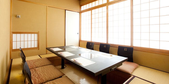 店内は、ホテル内のレストランらしくモダンで落ち着いた和空間となっております。暖簾で区切られたテーブル席や、掘り炬燵の座敷、個室もご用意しておりますので、ご接待での利用、ご家族の皆様のお祝いの席など、人目を気にせずゆったりお過ごし頂けます。