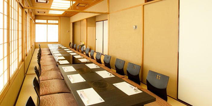 都会の喧騒を忘れさせる風情あふれる上品な店内で、吟味・厳選された極上の素材を用いた本格的な日本料理をお楽しみ下さい。大切な方のおもてなしにふさわしい本格的なお座敷、江戸前寿司・天婦羅コーナーの他に、炙り焼コーナーを設け、お気軽に日本料理の粋を味わって頂きます。