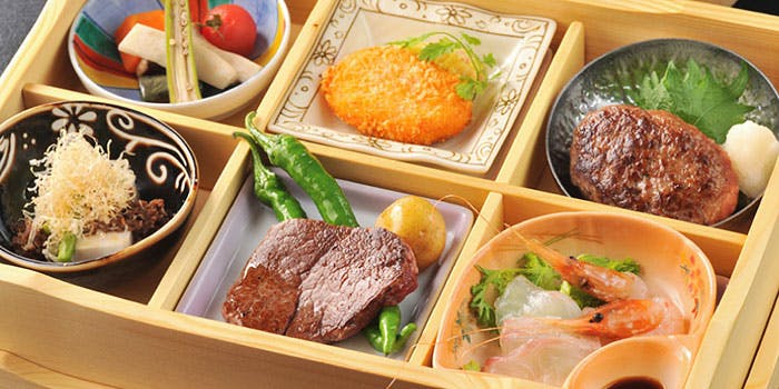 平日限定! 乾杯スパークリングと90分飲み放題付です。 特製松花堂前菜と国産牛フィレ100gまたはサーロイン100gをご堪能いただくコースです。 全席テーブル席の店内ですが、広々としたテーブルでゆっくりとして頂ける空間でございます。デートや接待、ご家族での会食など幅広いシーンに合わせてご利用いただけます。 ディナー 10,400円8,000円(23%OFF)
