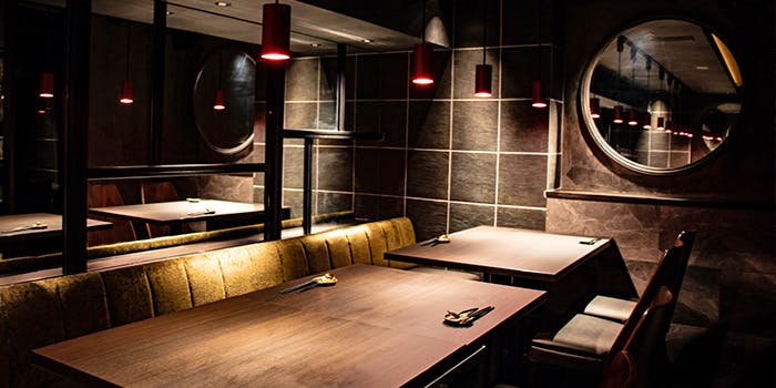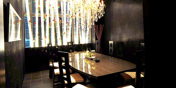 当店は赤と黒を基調とした店内で、ゆったりと落ち着けるソファー席も完備しております。全席テーブル席の店内ですが、広々としたテーブルでゆっくりとして頂ける空間でございます。デートや接待、ご家族での会食など幅広いシーンに合わせてご利用いただけます。