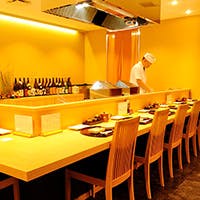 落ち着いた雰囲気の店内にはカウンター席とお座敷の個室をご用意しております。カウンター席では鉄板焼きの醍醐味でもある臨場感あふれるライブキッチンを味わいながら、大切な方と思い出に残るひとときをお過ごしいただけます。贅沢な時間をご提供いたします。
