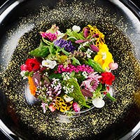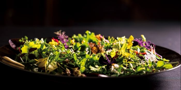 テーブルを彩るのは無農薬・有機栽培の野菜やハーブ、食用花。生産者こだわりの海の幸やお肉などシェフ自ら生産者のもとに足を運び、日本全国・世界各地から選りすぐりの旬の食材でお客様をお待ちしております。また、苦手食材・アレルギー等のご相談もお気軽にご相談くださいませ。