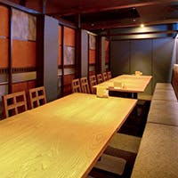 当店は、全席襖で区切られた大人のプライベート空間が広がります。お席も、掘り炬燵のお座敷からラウンジシートなど様々な種類をご用意しておりますので、シーンに合わせてご利用くださいませ。和モダンな雰囲気の店内で、至福のひと時をご提供いたします。