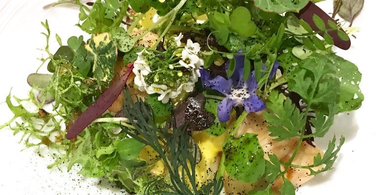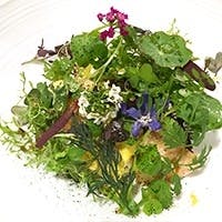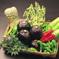店主の実家の自家菜園で採れる数十種類の野菜を使用。どの野菜も新鮮で優しい味わいが特徴です。「優しい食材とは自然であること」をモットーに農薬を極力使わないことはもちろんのこと、自然のままに、丁寧に大切に、我が子のように育てております。