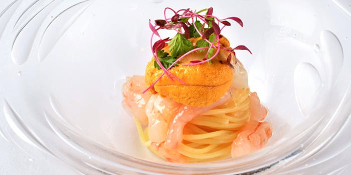 名古屋の柳橋市場や築地から仕入れる魚介類を使った鮮魚料理が自慢です。自家製のカラスミを使ったパスタが特におすすめです。また、オーナーシェフの山口が滋賀県出身であるため、メイン料理に近江牛を使うこともあり、厳選した食材を独自のスタイルで仕上げてお客様にご提供しております。ワインも山口がセレクトし、イタリアのペルカルロ (サンジュスト・ア・レンテンナーノ)をメインに、フランス、カリフォルニアの良質なものを取り揃えております。