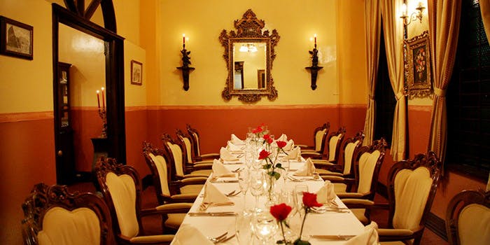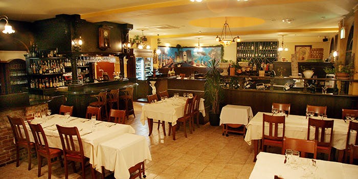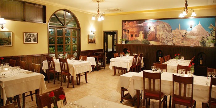 アンティカローマへようこそ。一歩中に入るとそこはまさにそこはイタリア。本場から取り寄せた調度品、本格派の内装とともに、本物のイタリア料理をご堪能いただけます。イタリア語の飛び交う賑やかな空間と、シックで大人の空間を気分に合わせてお楽しみください。イタリア直輸入の選りすぐりのワイン、薪窯で焼き上げる種類豊富な本格ピッツァ、ピアノやカンツォーネの生演奏…。ウェディングパーティーも承ります。