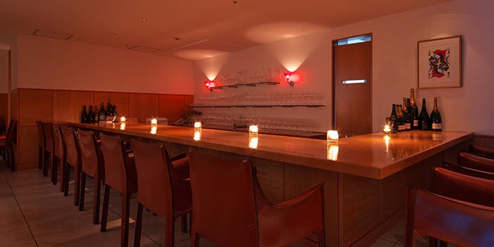 洗練されたデザインの店内では、シェフがゲスト一人ひとりに行き届くサービスを行うため、カウンター席のみとなっております。お一人様でも気軽にコース料理をお楽しみいただけます。シェフのもてなしを受けながら、優雅なひとときをごゆっくりお過ごしくださいませ。