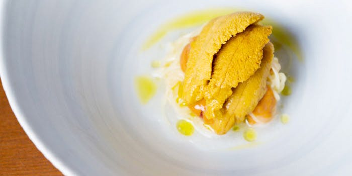 フランス食材や日本食材だけにこだわらず、幅広いジャンルの厳選素材をフレンチの確かな技法でフィンガーフードのスタイルにアレンジした「アラカルト」。 フランス料理の王道をふまえて、前菜・主菜・デザートをそれぞれ選べる週替わりの「プリフィクスコース」。小ポーションの小皿料理を10皿以上の構成で提供するモダンフレンチスタイルの「おまかせコース」。お客様のTPOに応じて使い分けていただけるお料理は「これからのフランス料理店のあり方の一つの可能性」と言うシェフの自信作ばかりです。