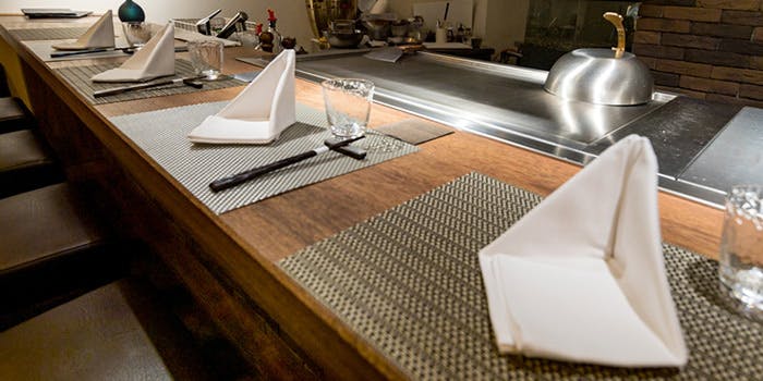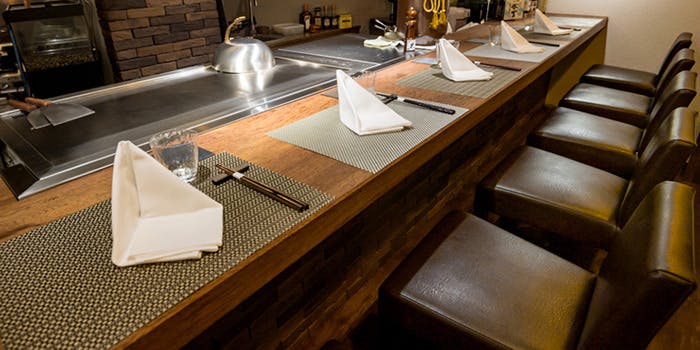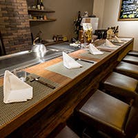 マンションのエレベーターで3階へ上がるとお洒落な空間がそこにあります。真っ赤な椅子のアクセントが効いたお洒落な店内には、話し好きで気さくなシェフと会話を楽しみながら鉄板焼きを楽しめるカウンター席をご用意しております。日常使いから特別な日まで、様々なシーンでご利用いただけます。