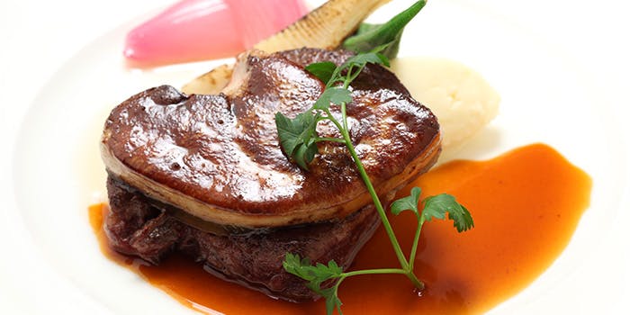 旬の食材をふんだんに使用し、前菜を2種類と選べるお肉料理をご用意致しました。 フランスとイタリアで腕を磨いたシェフが創り出す四季を感じる華やかな逸品。 ソムリエが心に残る一本をご案内する為にワインも豊富にそろえております。 お誕生日や記念日の特別な日のお食事はもちろん、最大40名様までのウエディングパーティも承っておりますので、様々なシーンでご利用頂けます。 ディナー 15,730円