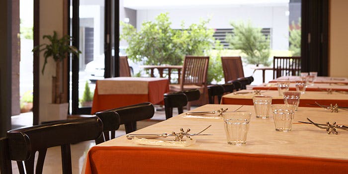 店内は「古き良きイタリア」をテーマに、オーセンティックな雰囲気で落ち着きのある空間がお客様をお出迎えいたします。客席は、テーブル28席、カウンター 4席、最大12名まで入れる個室が一つあり、お一人様、カップル、接待、家族での食事と、すべてのお客様の利用用途に対応できる造りです。お客様への心地よいサービスに力を入れておりますので、大切なお食事の際は当イタリア料理店へお越しくださいませ。
