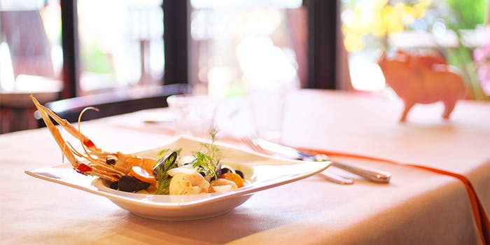 四季折々の旬食材を使用した、色鮮やかな料理を。味付けだけでは表現することができない、食材そのものの美味しさを感じて頂きたいから。新鮮で美味しく、優しい味わいの食材を使用。そして食材の美味しさを引き立てるソースと調理方法を用いて。同じ食材でも一皿一皿違う顔を持つ、味わい深いお料理をお楽しみください。丁寧に、美しく。皿やグラス、カトラリーなどお料理だけでなく、目に入るもの全てに注力した、好奇心をくすぐるイタリアン。一皿一皿違う味わいに合わせて色を添える、美味しいワインと共に味わうのも楽しみ一つです。