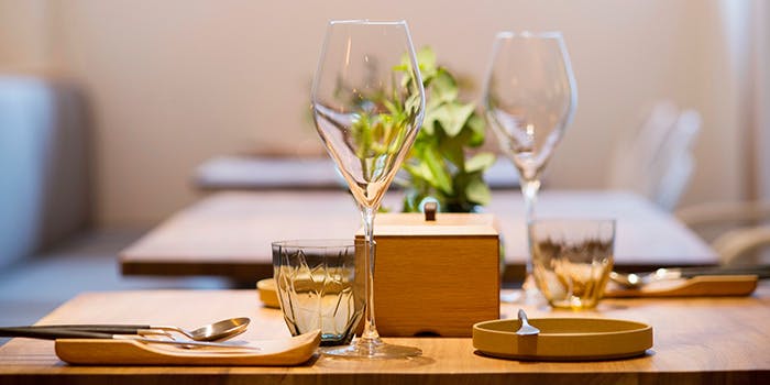 凛とした和の佇まいから店内に入ると落ち着いた大人な空間が出迎えてくれます。椅子やワイングラスなどにもこだわっており、高級感を演出いたします。接待などのビジネスシーンや、ご友人方とのランチに、頑張った自分たちへのご褒美に、大切な人との語らいに、それぞれの大切なお時間をお過ごしくださいませ。
