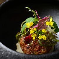 伝統的なフレンチの技術をベースに、旬の素材をオリジナリティあふれるモダンなスタイルで提供いたします。アミューズは芸術作品のような美しさ、それでいて素材の持ち味を生かすよう繊細に、丁寧にお作りいたします。目で見て楽しみ、口に運んで香りや食感に感動する。五感の喜ぶフレンチコースをお届けいたします。