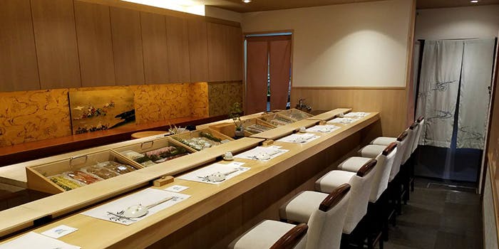 地下へと続く階段を下りれば、そこにひっそりとLisがございます。木の扉を開けて足を踏み入れると清潔感がありながら、温かみのある居心地の良い空間が広がります。お席は全8席のライブカウンターのみ。料理が出てくるまでの時間も、職人技を楽しみながらお待ちいただけます。店主佐藤氏との会話も楽しみながら、和やかなひと時をお過ごしください。