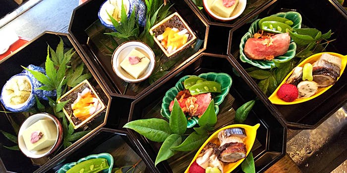 細やかな日本情緒を込めた四季折々の旬の味わいや日本各地から吟味して集めた銘酒を、料理人自慢の包丁さばきとともにお楽しみいただけます。ランチタイムには、旬の素材を使用したバリエーション豊富なお重をご用意しております。 ランチ 3,509円2,500円(28%OFF)