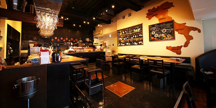 新宿東口の明治通り沿いビルの2階に位置する「伊太利亜市場BAR」。イタリアの雰囲気が味わえる活気溢れる店内にはテーブル席とカウンター席がございます。また、店内奥には個室もご用意しておりますので様々なご用途でご利用いただけます。