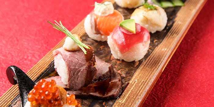 既製品を使用せず、職人が手間をかけた料理をお愉しみ頂けます。コースは旬の食材を創作和食にアレンジしコースごとに内容を先付からデザートまで違う、お料理でご提案。記念日・誕生日にはサプライズケーキをサービスしております。オープン当初からの人気メニュー『シシリアントマト鍋』他店との違いはトマトの甘味が詰まった濃厚スープ。シシリアントマトをオーブンで加熱する事から始まる、手間暇かけたその味は寒い季節にはたまりません。もちろんワインとの相性も間違いなしです。