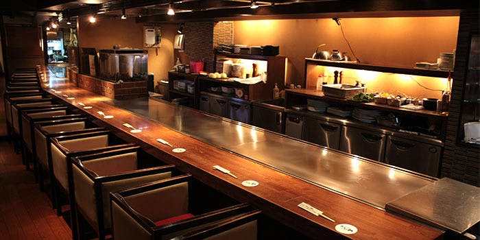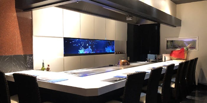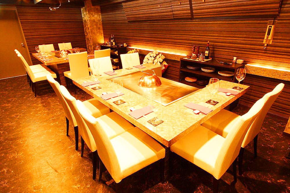 特注の鉄板を用いて、お客様の目の前で作られる鉄板焼きは格別。店内は落ち着いた雰囲気があり、ゆっくりとした時間が流れています。厳選された肉や魚を使用した鉄板料理と、お料理によく合うワイン、カクテルまで取り揃えて皆様をお待ちしております。誕生日や記念日、接待など特別な日のお食事に、ぜひご利用ください。