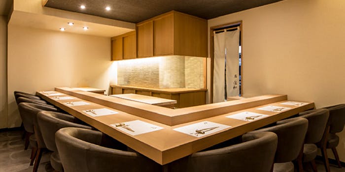 店内は静かに時間が流れる落ちついた空間。シェフの技を間近で楽しめるカウンター席はまさに特等席。特注の鉄板を用いて、お客様の目の前で仕上げるパフォーマンスは圧巻です。また友人との呑み会や女子会などのお集まりにご利用いただけるテーブル席もございますので、用途に合わせてご利用ください。接待やご会食、貸し切りなども承りますので、お気軽にご相談くださいませ。