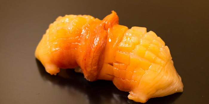 穴子尽くしのコースに使用されるのは「対馬西沖の伝助穴子」。韓国との国境に近い対馬西沖の深海はエビやイカなど穴子にとって豊富な餌に恵まれ、また海流が比較的穏やかな関係から、しっかり脂がのりつつも身質の柔らかい上質な穴子が獲れます。中でも全体の数パーセントしか獲れない大ぶりな伝助穴子は旨味、脂のりが抜群で築地から高級料亭などにしか流通していない非常に貴重な穴子です。「長崎県対馬市美津島町 しろや 新宿」では水産会社直営という利点を最大限に活かし、新鮮なまま漁師から買い取り現地自社工場から店舗に直送しています。