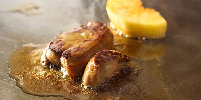 特注の鉄板を用いて、お客様の目の前で作られる鉄板焼きは格別。店内は落ち着いた雰囲気があり、ゆっくりとした時間が流れています。厳選された肉や魚を使用した鉄板料理と、お料理によく合うワイン、カクテルまで取り揃えて皆様をお待ちしております。誕生日や記念日、接待など特別な日のお食事に、ぜひご利用ください。 ディナー 10,454円