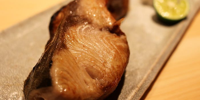 余分な水分や脂が落ち、凝縮された旨みが際立つ調理法のひとつ「原始焼」。魚を目利きし、絶妙な塩加減と炭火を自由に操る料理人の焼き技で、パリっと香ばしく中はふっくら。旬を迎えた海の幸を堪能できます。