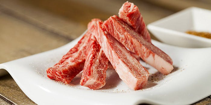 緑に囲まれたCASCADE HARAJUKUの空間を最大限に活用し、木のあたたかみと優しさ、光を感じるモダン・ジャパニーズの空間デザインです。ロースターや設備にも徹底的にこだわっているため、髪や服にも匂いがつきません。個室も2部屋ご用意しており、会食やデート、観光など様々なシーンで安心してご利用いただけます。上質の日本的な空間で、カジュアルに焼肉とワインを自分らしくアレンジして楽しんでいただきたい 。