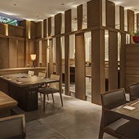 青山通りから細い路地入るとすぐ、駅から徒歩1分の好立地でありながらもお店の周辺は静かな時間が流れています。店内の壁には大理石を使用し、各テーブルを仕切る格子やテーブルでは木を使用しているので、店内は単に高級感を感じさせるだけではなく、ゆったりと寛げる空間となっております。ご接待やご会食など、ビジネスシーンにもご利用頂ける個室も完備しておりますので、細部までこだわり抜いた上質な空間をシーンに合わせてお愉しみください。