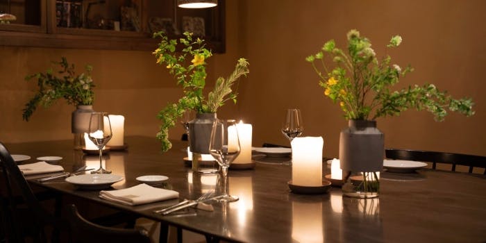洗練された空間と接客で、お客様それぞれに合わせたサービスのご提供する当店。感性で愉しむシェフの独創的なお料理は記念日やデート、様々なシーンに彩をそえます。 大切な方との贅沢なひと時をお過ごしください。
