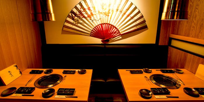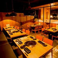 高級感のある外観、そして広々とした店内には最大10名様用の完全個室や2名様用の半個室もご用意しております。最新の無煙ロースターも完備しており、煙も気にならないのも魅力です。シックな雰囲気の中で、デートや女子会、会社宴会やかしこまった会食の場など、様々なシーンにご利用ください。