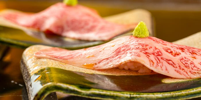 渋谷区保健所より【認定生食用食肉取扱者等設置施設】として受理され、安心で安全な新鮮な生肉、生食をご提供できるようになりました。保健所認定なので合法的に「和牛ユッケ」や「和牛刺し」などの生肉をお楽しみ頂けます。「御来光すきやき」や「富士山頂盛り」などインパクト抜群のメニューをはじめ、ご宴会には極上の肉を存分に堪能頂けるコースも充実しております。