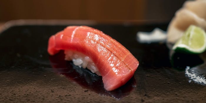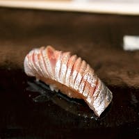 当店のこだわりは、お料理の随所に感じることができます。すべてのお鮨に使われるシャリは、昔ながらの赤酢を独自の配合でブレンドしたものを使用し、ネタの味を引き立てます。厳選された魚介類は、江戸前鮨の丁寧な仕込みが施され、鮨一貫でもじっくり堪能できるほど旨味が引き出されています。ぜひ大切な方と、美味しいお鮨と日本酒をご堪能ください。