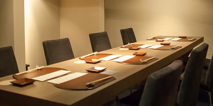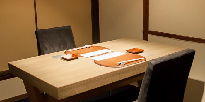 シックな色合いで統一された店内は、まさに心落ち着く上品な雰囲気。半個室のお部屋も備わっておりますので、会食にもご利用いただけます。お隣の席とも程よい空間があり、お食事のひとときをより愉しくする大切な方との会話もゆったりとでき、ごゆるりとお過ごしいただけます。