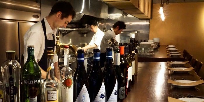 表参道駅徒歩3分、北青山の閑静な路地裏の一角にあるお店です。扉を開けると木を基調とした、落ち着いた空間。厳選した季節の素材を丁重に調理し、提供する本格的なフランス料理。食事だけではなく、お酒をじっくりと味わえるのも魅力のひとつ。フランス各地とアメリカを中心としたワインが充実しています。店内はカウンターが中心、テーブル(最大12名様迄)ございます。グループでの会食もお一人様もお気軽に。