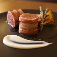珍しい仔羊のフィレ部分をオリーブ等を詰めてベーコンで包み丁寧に火入れ。独特の臭みが苦手な方も美味しいと好評です。